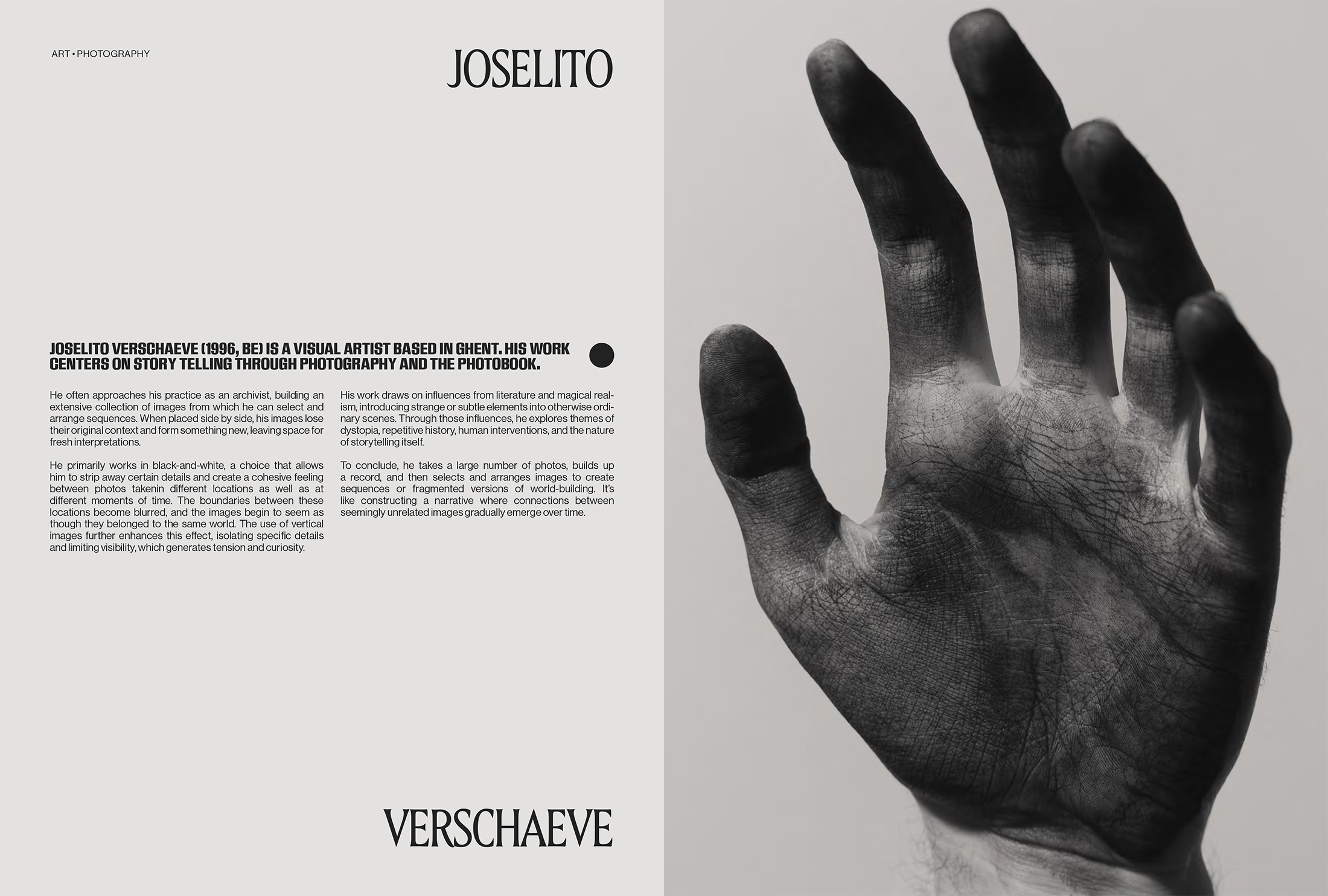 JOSELITO VERSCHAEVE (1996, BE) IS A VISUAL ARTIST BASED IN GHENT. HIS WORK CENTERS ON STORY TELLING THROUGH PHOTOGRAPHY AND THE PHOTOBOOK.